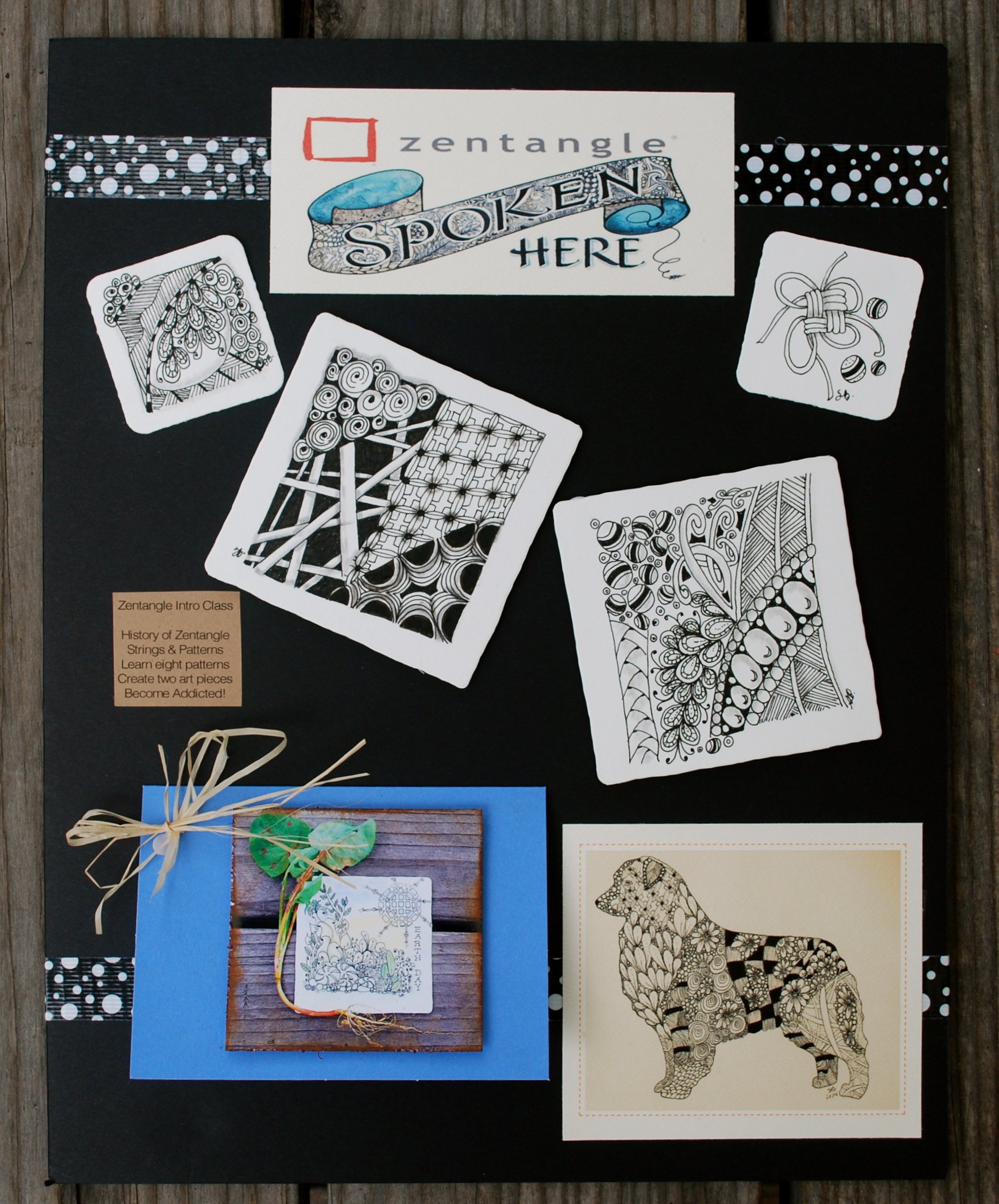 As noted in my previous post, I’ve schedule a “Introduction to Zentangle” class at the Icarus Creative Arts Studio & Gallery in the historic Bernardo Winery in the San Diego area. I needed to create examples for their “class table” so I’ve put together the following. Here’s hoping it gets people excited to take the journey! I’m excited to show them the way …