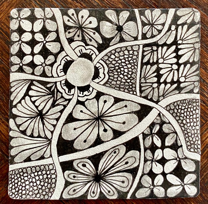 I’ve always admired the Zentangle art of Margaret Bremner of Canada so I couldn’t pass the chance to take a virtual class from her last week featuring “Floral Tangling with Margaret”.