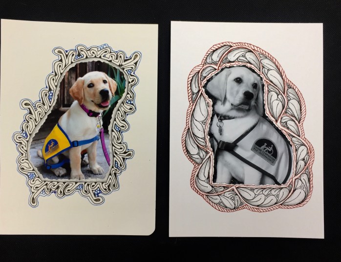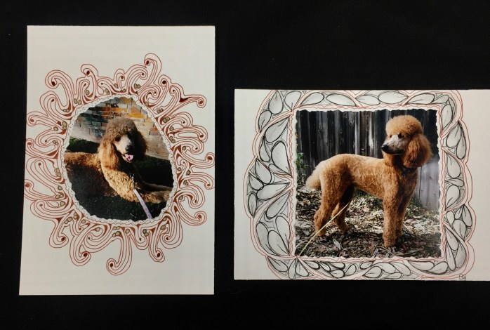 Pets were a very popular photo theme in the class. Family photos, both old and new, were also favorites. There are endless possibilities in choosing patterns to fill the cartouche frames so finding ones that suit the actual photo are part of the fun of drawing a cartouche.