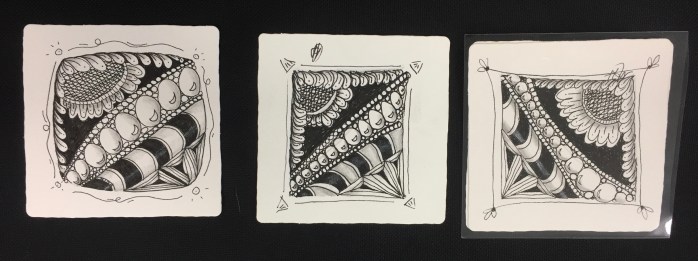 We started off with our basic “Z” tile and discussion of some of the Zentangle basic strokes. Once we brought out the pencils and shaded our tiles, we all saw what great pieces of art each person created and, of course, how different they all were even though we all had the same instructions and used the same patterns.