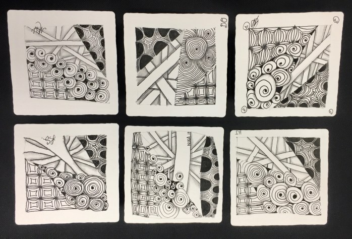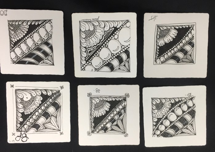 You’d never know it from looking at the photographs, but two of the people who joined this class, just completed their basic Zentangle class two weeks prior to this class! Nice work by everyone.