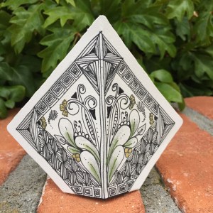 The class was a real success with us creating two different tiles using different patterns. Everyone agreed it’s a different and fun way to tangle without using the “traditional” string theory.