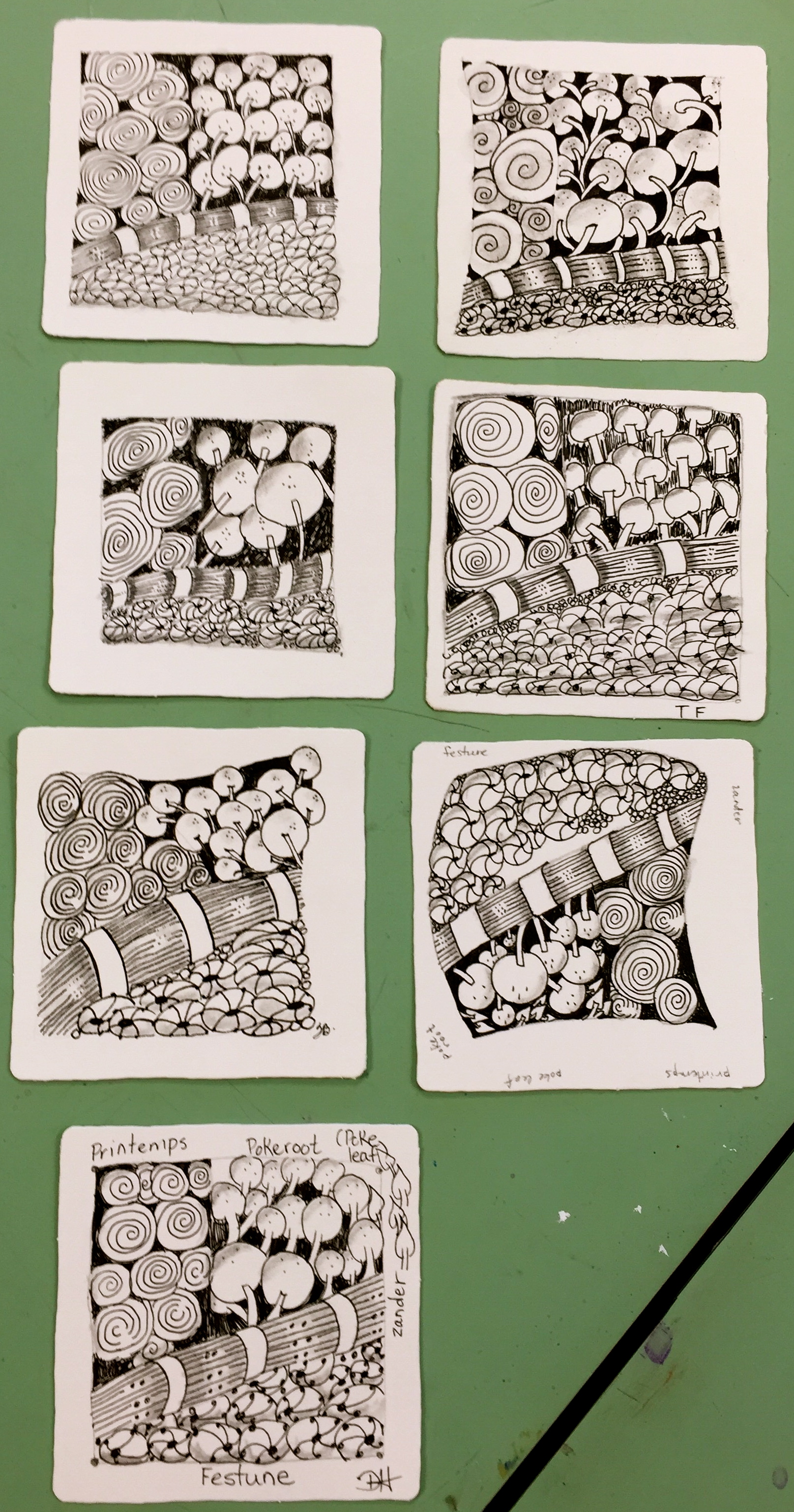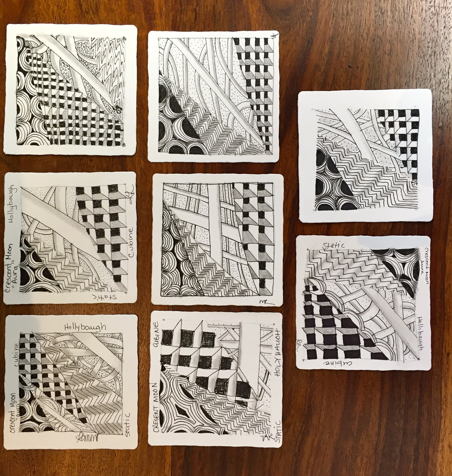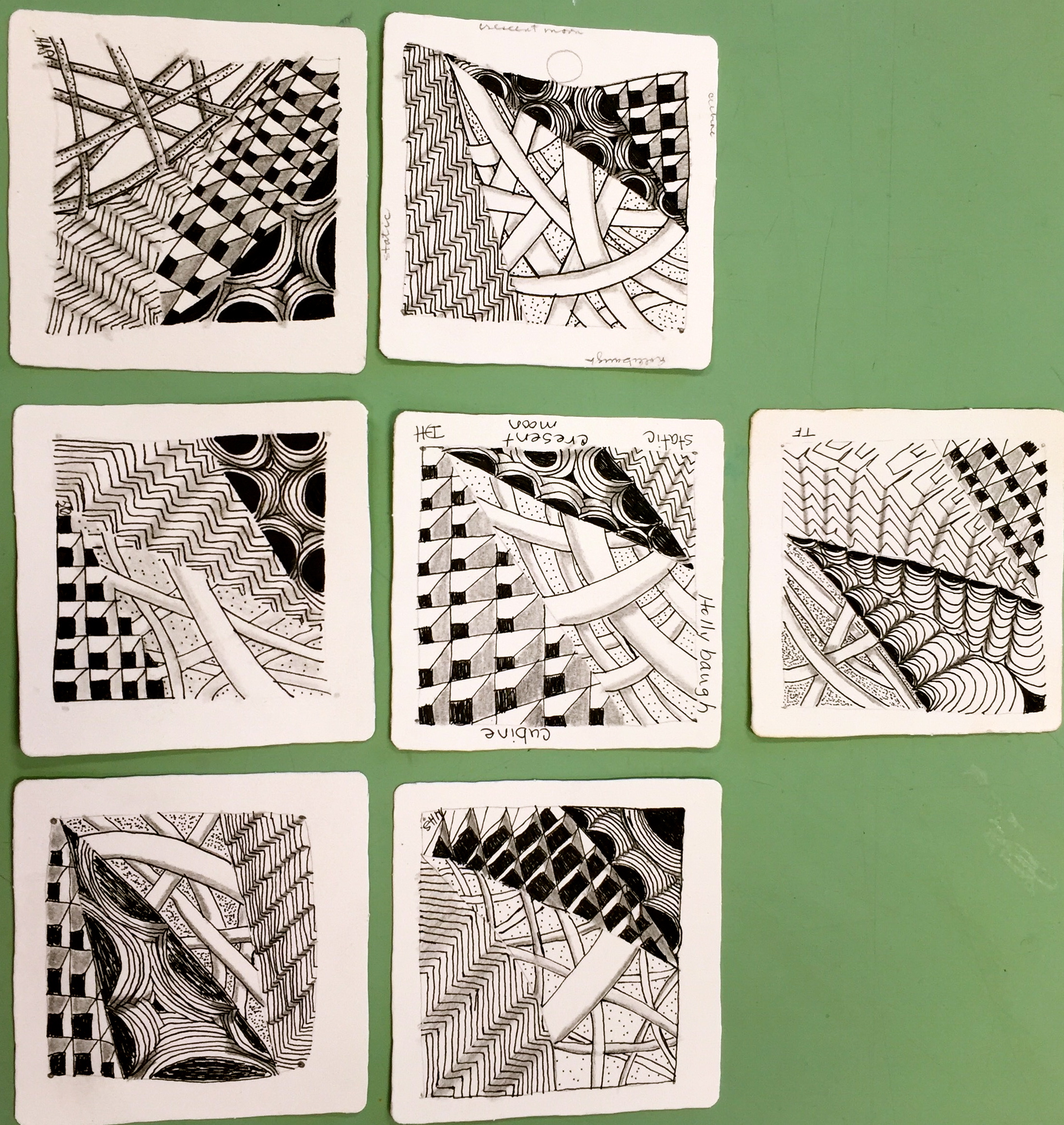 As much as I don’t want to post this here, I find I must – remember that there is a 48-hour cancellation policy if you cannot attend a class. This class was full with twelve people enrolled, but with late cancellations and no-shows, only six came. I had a waiting list that would have allowed others to enjoy the cool, air-conditioned studio this afternoon. Please keep this in mind so that I can share my passion for Zentangle with all who are interested! Thank you.