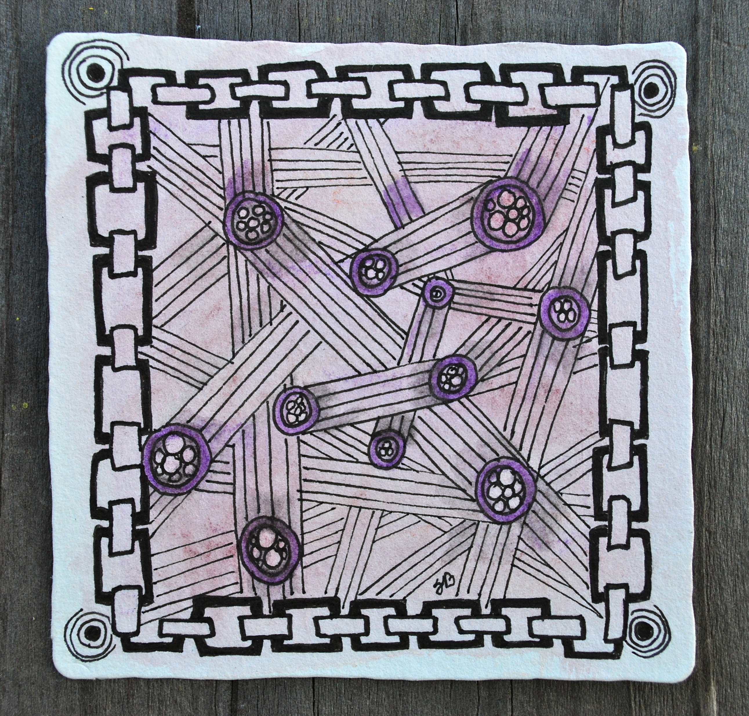 This week’s Diva Challenge was a “duo tangle” – create your tile using just the two patterns, Well and Punzel. Here’s my entry for the week. Visit the Diva Challenge website to see how others interpreted these two patterns together.