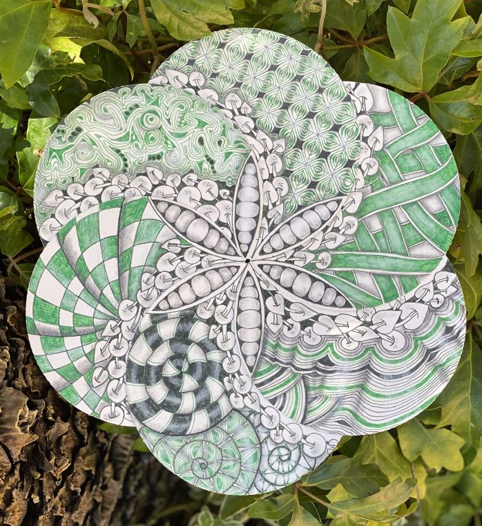 During the month of August, I’ve been participating in an on-line gathering of CZT’s from around the world in an event called CZT: AE 2020 Master Classses. This was created by Stephanie Jennifer and Debbie New, CZT’s in Singapore. Classes are taught by CZT’s worldwide. It’s been fun, challenging, and educational, and I still have several classes to go! Now that I’m officially retired, I’ve had lots of time to do this!