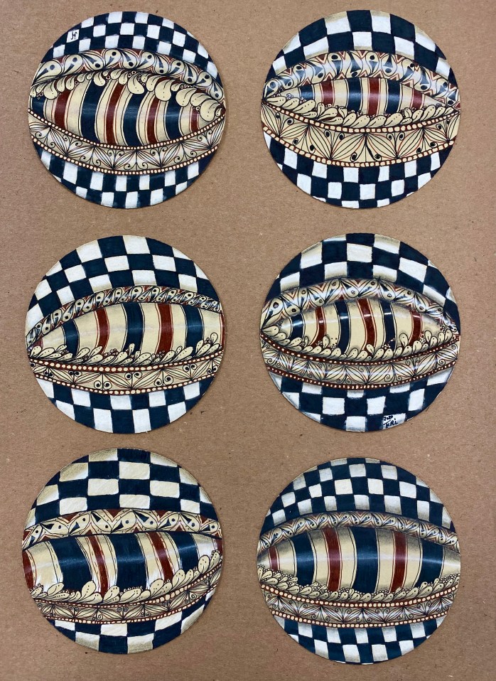 Classes have started back up at Icarus Creative Arts Studio for 2020! The first one of the year was “Renaissance Tangling” inspired by “Madame Renaissance”, an e-book created by Stefanie van Leeuwen, CZT. Her passion for the “Zentangle Renaissance” style found her craving more direction in shading, highlighting, etc. In not finding too much out there, she created her own! Her style of teaching in the e-book is very good and I would recommend the purchase to anyone interested in the tan tiles with an emphasis on shading and highlighting.